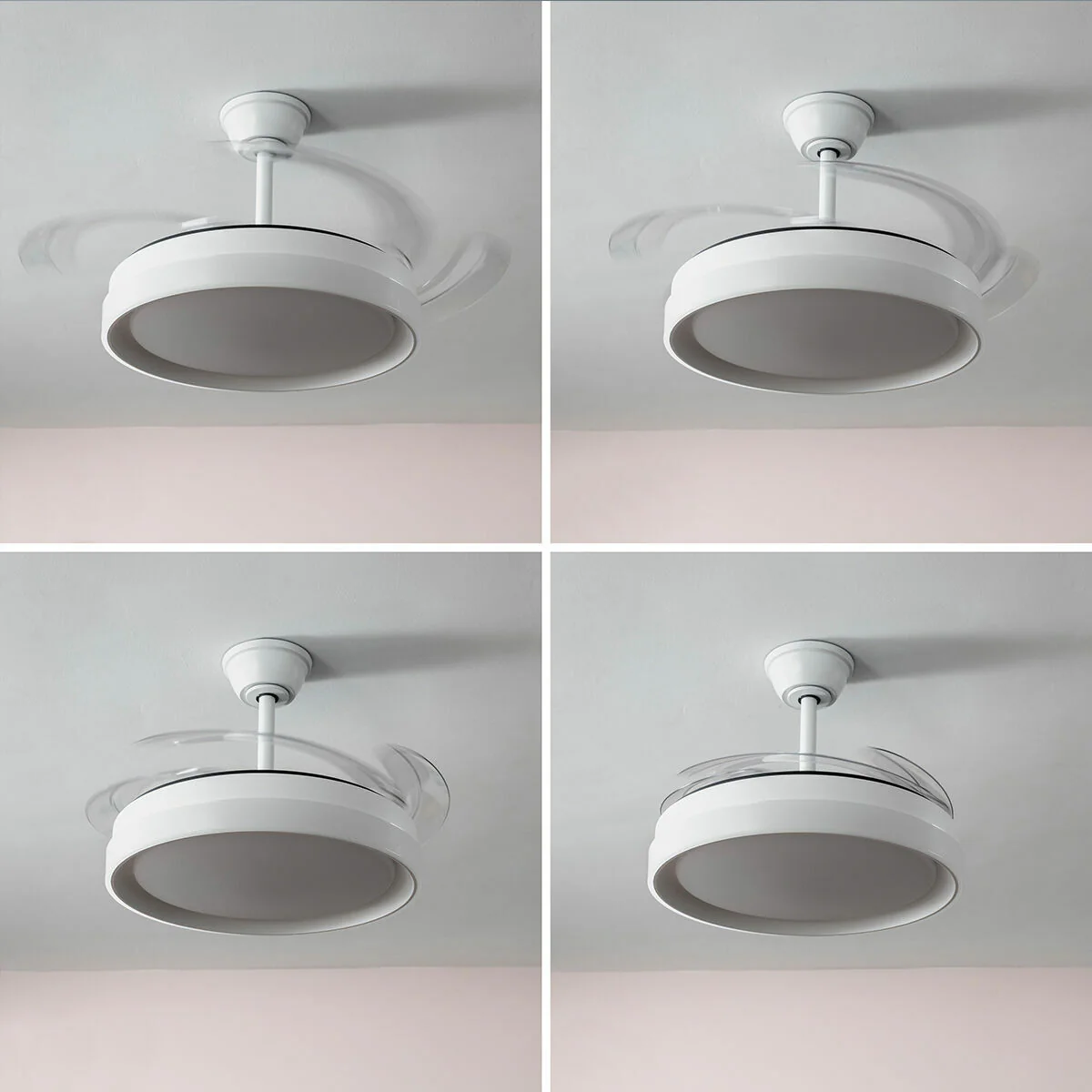 - Silencioso, motor DC: nuestro ventilador de techo con luz LED y aspas retráctiles es perfecto para disfrutar de un ambiente fresco, agradable y bien iluminado. Por su diseño moderno y elegante, se integra fácilmente en la decoración del hogar. Ventajas de su motor DC: más ligero, más silencioso (menor fricción), menor consumo (hasta un 60-70 % más bajo), mayor control y más velocidades, etc.